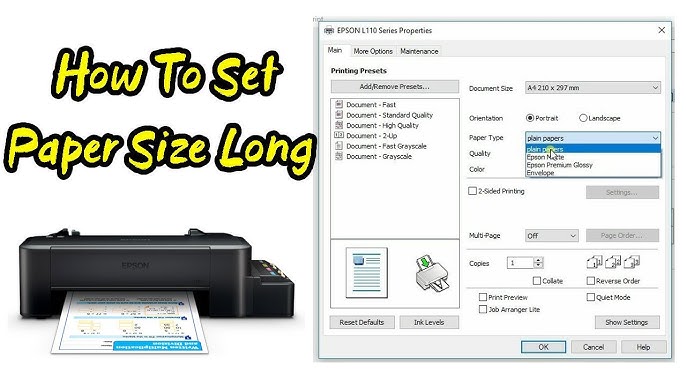 How To Set Print Size To Long 8 5 X13 Paper For Epson Printers Youtube